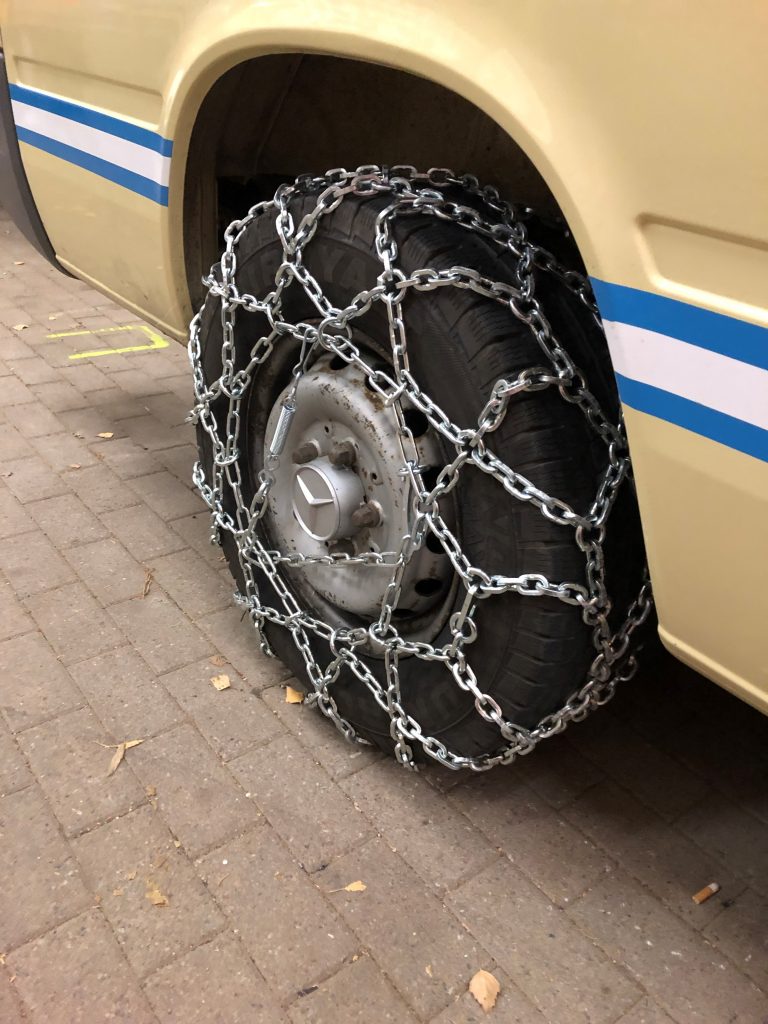 Aufgrund des bevorstehenden Wintereinbruchs, wurden die Schneeketten direkt montiert und die ersten Mitglieder auf die Montage sowie das fahren mit Ketten unterwiesen.