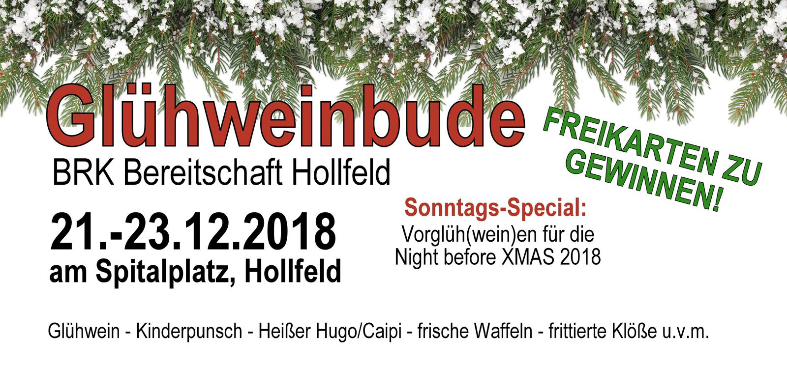 Eine tolle Gelegenheit, sich in Hollfeld zu treffen, bietet die Glühweinbude am Spital. Auch in diesem Jahr haben wir, die BRK Bereitschaft Hollfeld, die Ehre, die Glühweinbude wieder eine Wochenende betreiben zu dürfen. Wir würden uns freuen, dich bei toller weihnachtlicher Stimmung, leckeren Kinderpunsch, Glühwein, Fruchtglühwein, heißem Hugo, heißem Caipirinha, […]